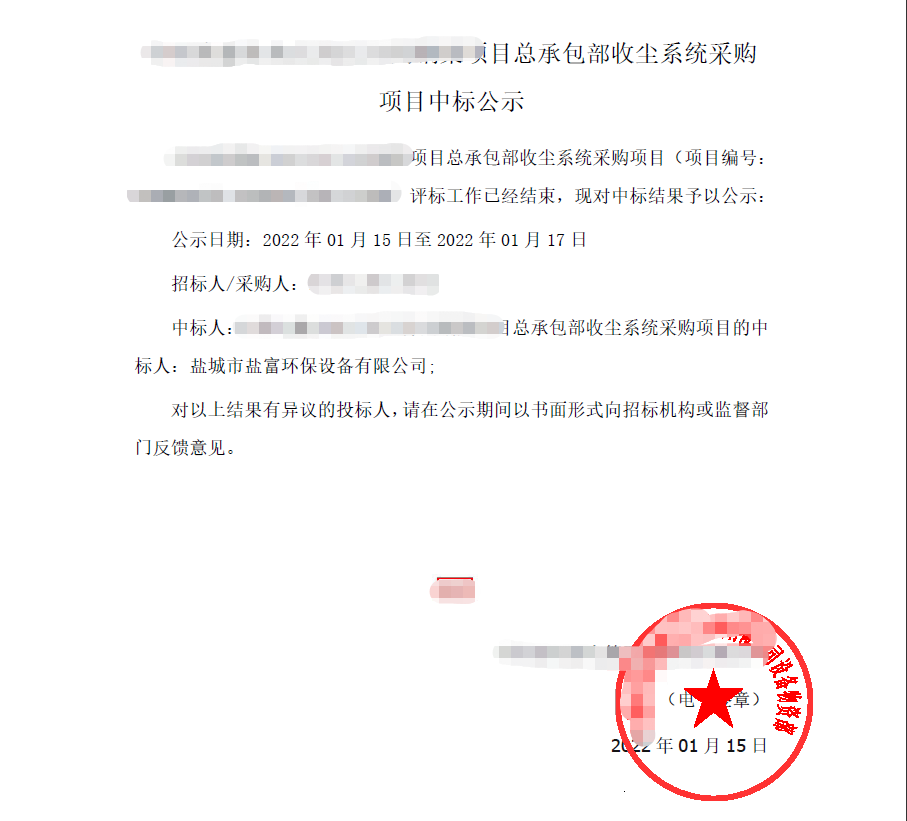 開年傳喜訊,近日從招標單位傳來好消息,鹽富環(huán)保成功中標又一大型砂石骨料項目總承包收塵系統(tǒng),實現開門紅。